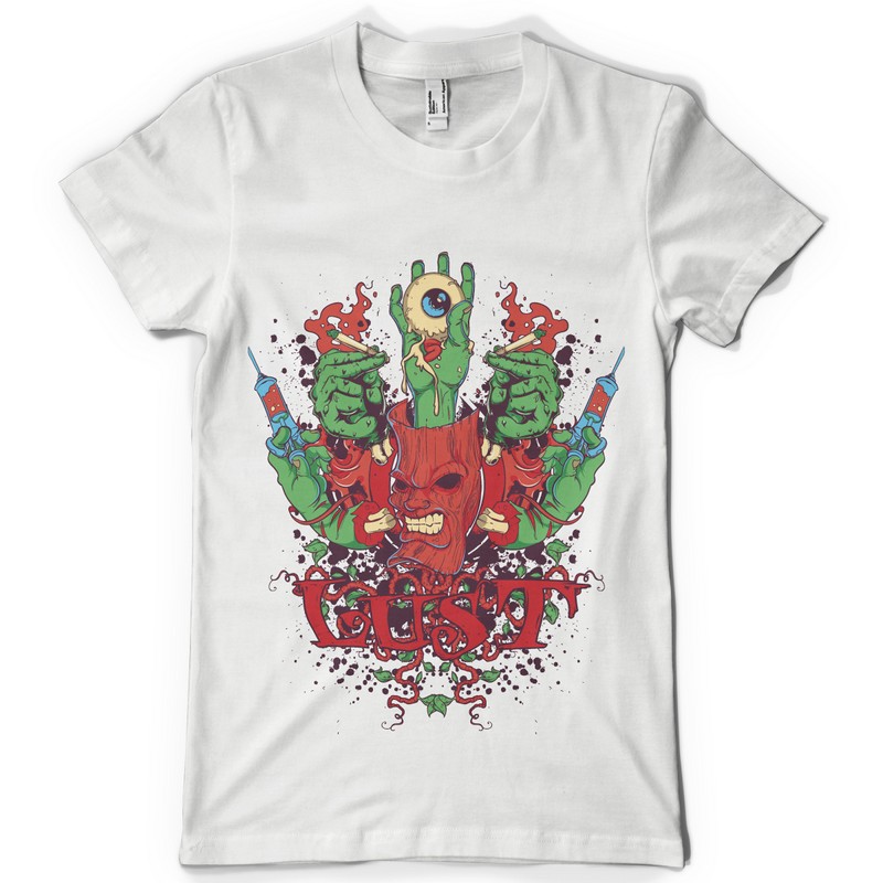 Lust digital design template in vector format, featuring detailed madness now available for Adobe Illustrator, Adobe Photoshop and Corel Draw and can be used for digital printing and screenprinting .