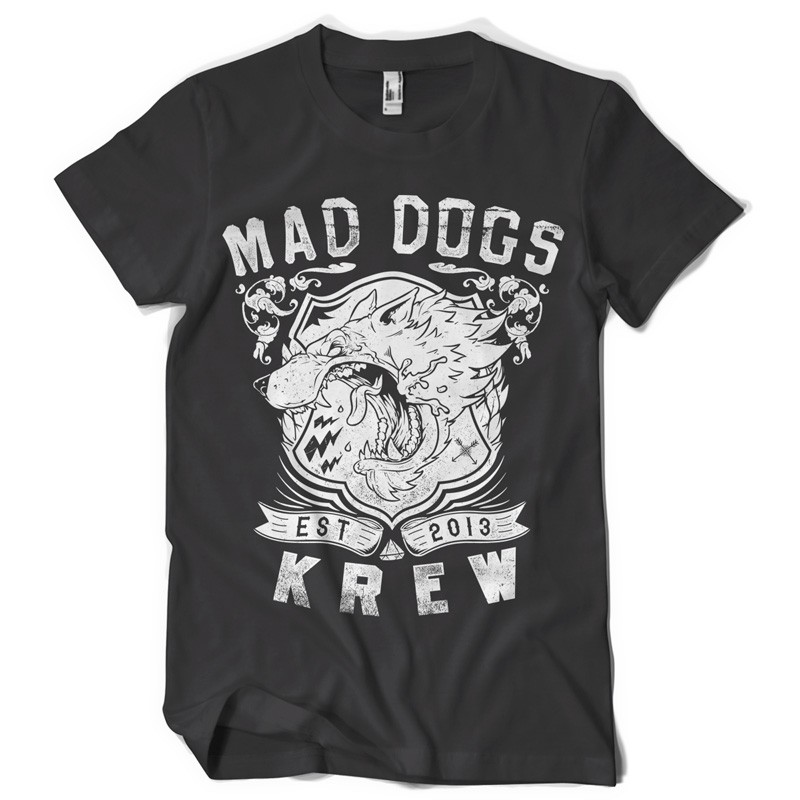 Mad dogs Krew graphic design template in vector format, featuring detailed angry dog now available for Adobe Illustrator, Adobe Photoshop and Corel Draw and can be used for digital printing and screenprinting .