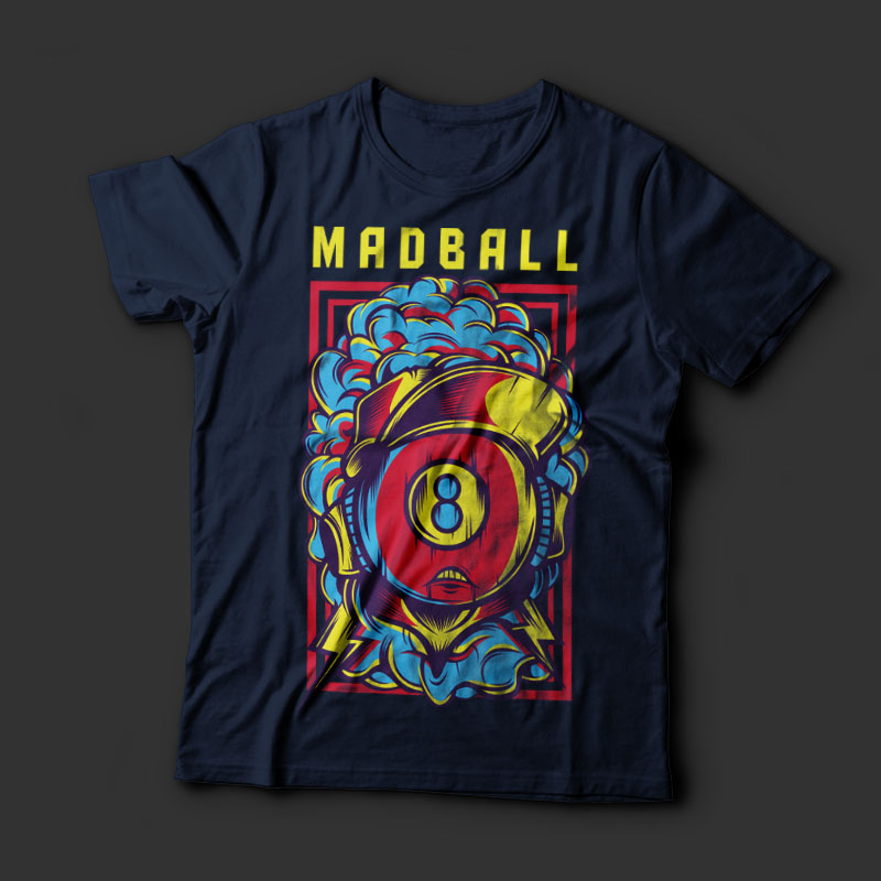 Madball with Urban fun color style. Cool vector design that looks fun but sporty. Based on vector file, easy to resize and edit. File features AI, EPS, and PNG all in zip, CMYK color mode and 4 colors print.