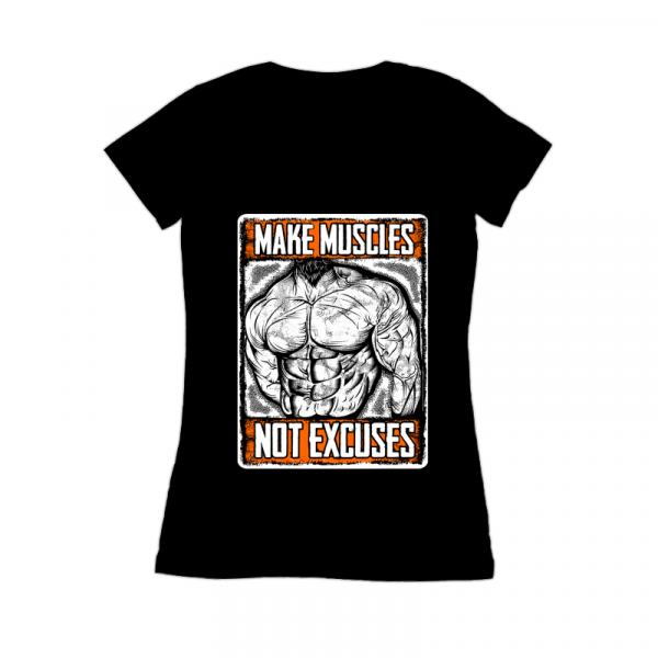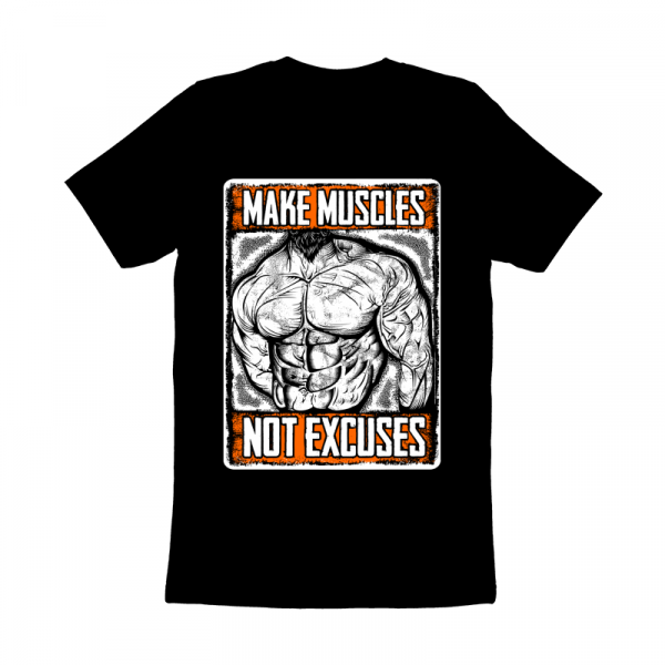 “ MAKE MUSCLES NOT EXCUSES ” T-Shirt was created with Corel Draw and Adobe illustrator.two color print, CDR,AI,PNG. Can be used for digital printing and screen printing