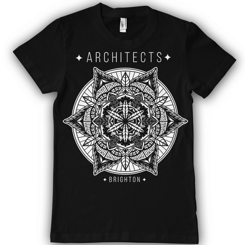 Mandala T-shirt design template with Adobe Photoshop, one colour on black, PSD separated Layers. Can be used for digital printing and screen printing. Easy editing text, including fonts.