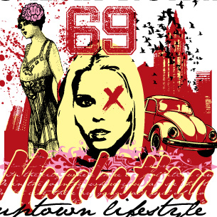 Digital design featuring detailed lifestyle from Manhattan. Manhattan template is available in vector format and can be used for digital printing and screenprinting. The file will be available for Adobe Illustrator, Adobe Photoshop and Corel Draw.