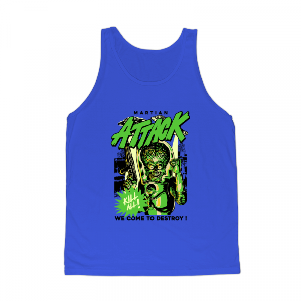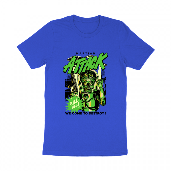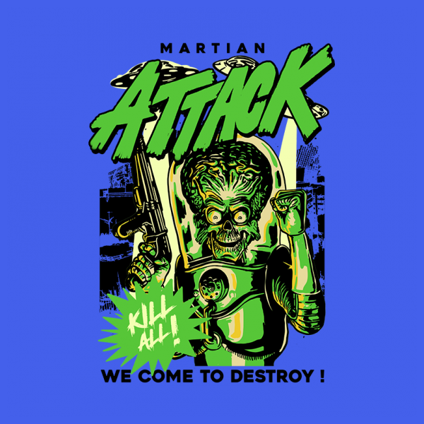 This design “ martian attack” is made in Adobe Ilustrator is ready for print.