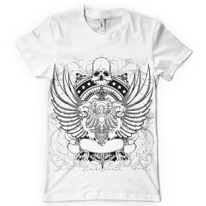 Master of sword printed t-shirt features a detailed screen print of a skull holding a sword is now available in EPS format file and can be used for digital printing and screenprinting . Ready to print or use in anything you want.