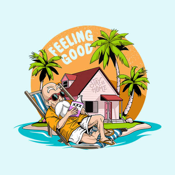 master roshi is enjoying the beach and reading a book to escape the pandemic and stay safe by pujartwork. AI source files and png in them with very high resolution quality