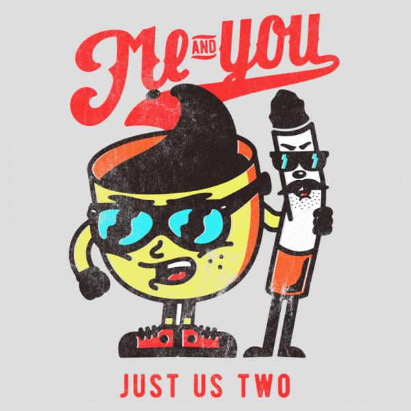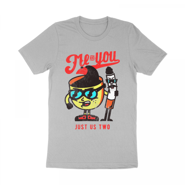 "Me and You" T-shirt design featuring funny cartoon characters and a nice quote. The files available are suitable for Adobe Illustrator and Adobe Photoshop and can be used for digital printing and screen-printing.