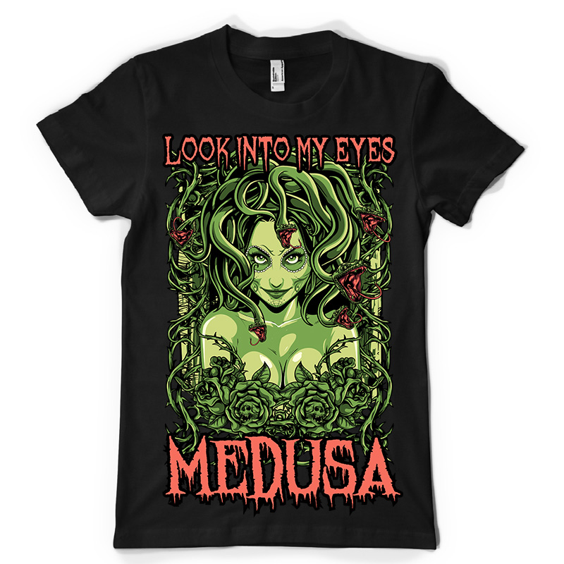 Medusa design features a Mythology Female detailed screen print now available for Adobe Illustrator, and Corel Draw and can be used for digital printing and screenprinting