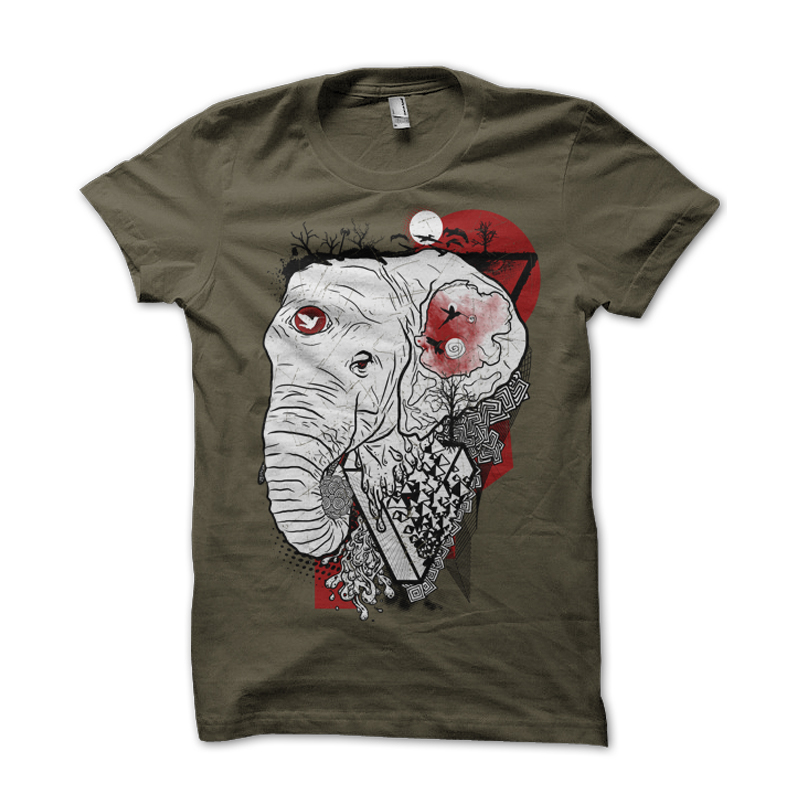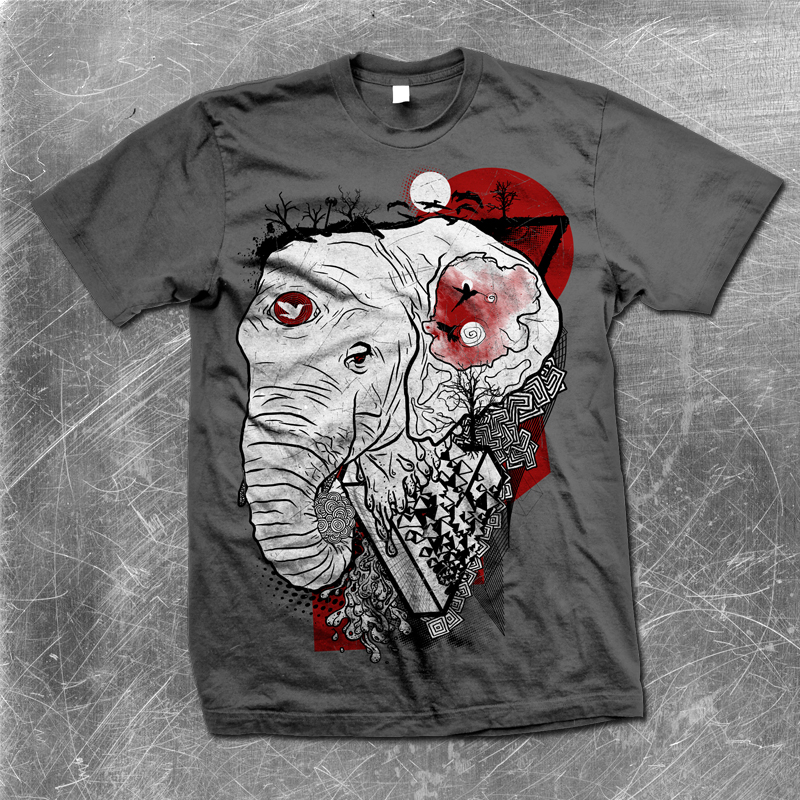 Melting printed t-shirt features a detailed screen print of melting elephant available in two color design created in Adobe Illustrator and can be used for digital printing and screenprinting .