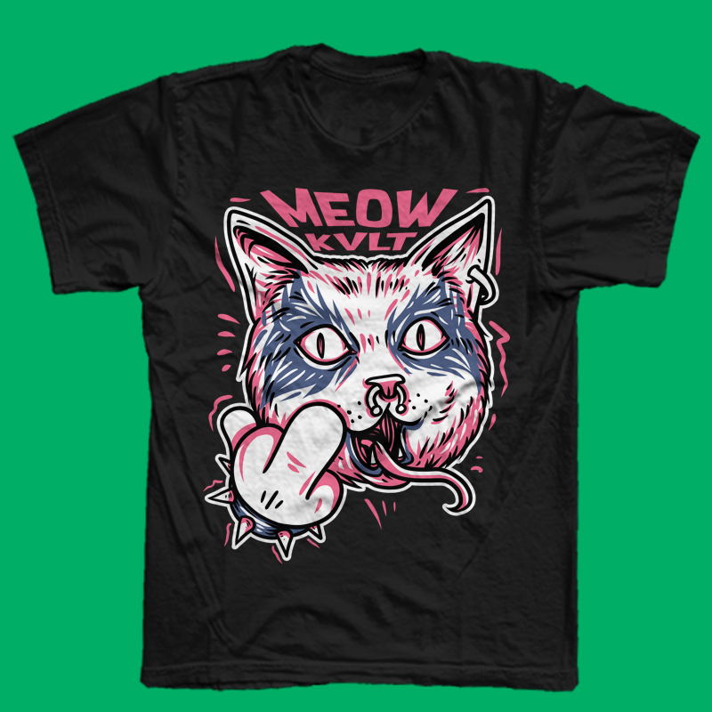 "Meow Kvlt" design is created with Adobe Photoshop. The colors are separated on different layers, at 37 x 46 cm with 300 DPI. You can use it for digital printing and screen printing. Thank you for looking.
