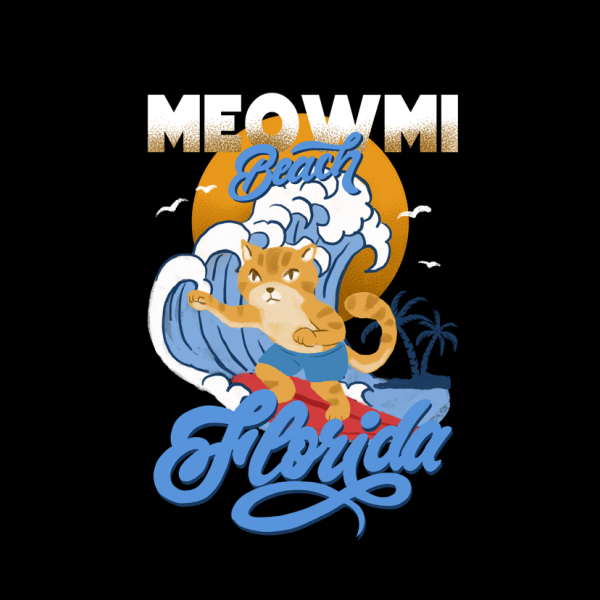 This design “meowmi beach ” is made in Adobe Photoshop is ready for print.