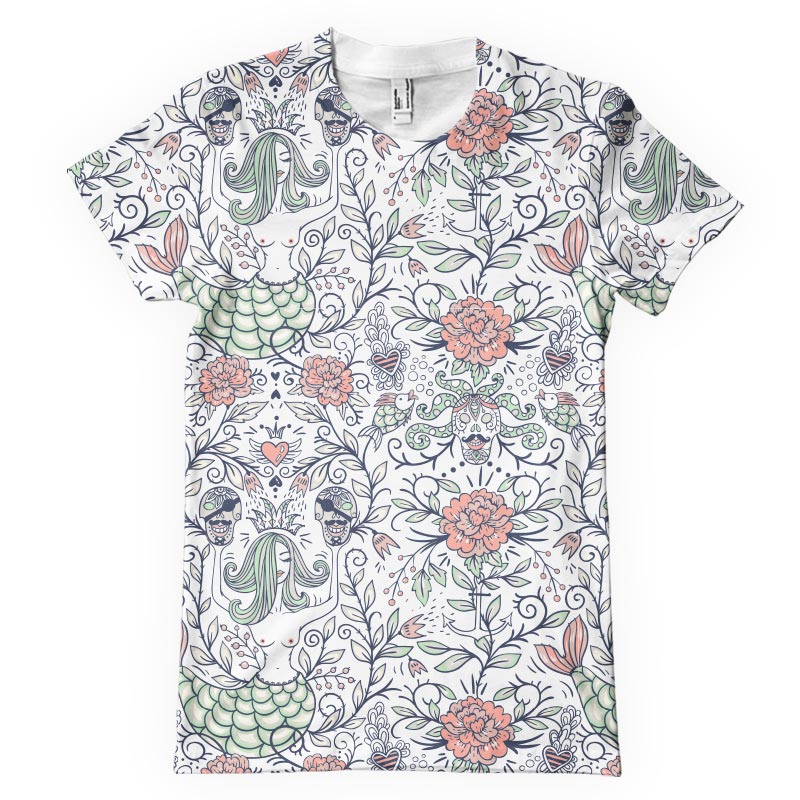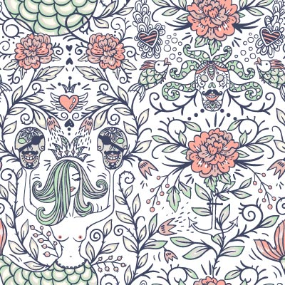 Mermaid pattern from the Vector collection of seamless patterns with vintage roses, diamonds and funny skulls. This image is a vector illustration and can be scaled to any size without loss of resolution. This image will download as a .eps file.