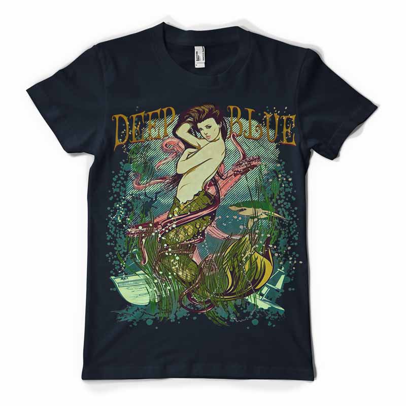 Mermaid t-shirt design featuring detailed diva deep ocean created for Direct To Garment/ Digital design Adobe Photoshop High Resolutions up to 300 dpi.format Psd,Pdf,Tif.