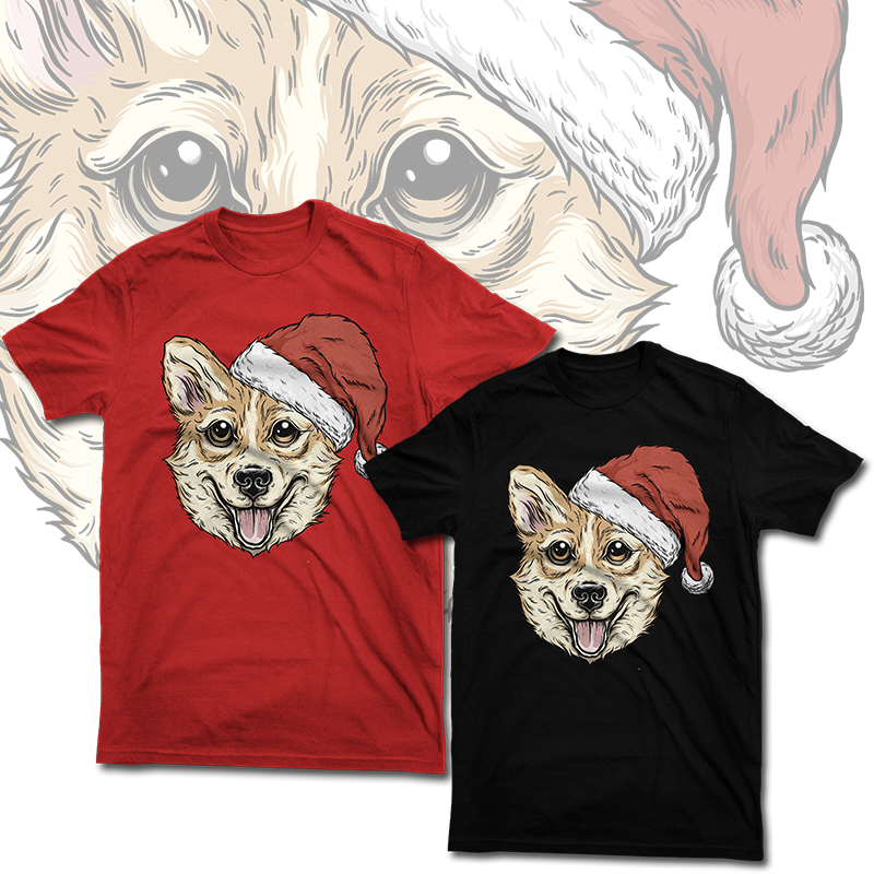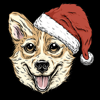 Vector illustration of dog. For Christmas edition, corgi with santa hat.