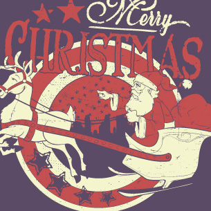 Merry Christmas graphic design template in vector format, featuring detailed Santa Claus on his sleigh now available for Adobe Illustrator, Adobe Photoshop and Corel Draw and can be used for digital printing and screenprinting .