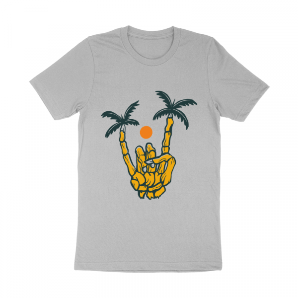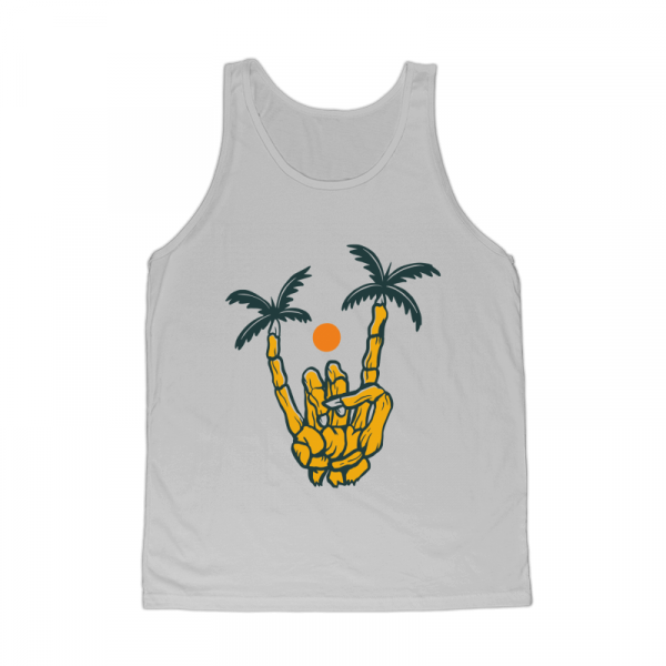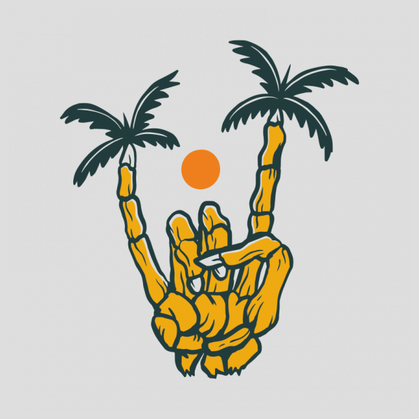 Metal Hand Skeleton Island is a vintage illustration that is suitable for apparel or merchandise about nature, outdoors, summer, vacation, beach, holiday, tropical, island, skull, skeleton, horror, halloween.