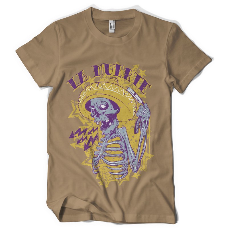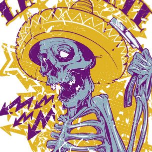 Mexican death design template in vector format, featuring detailed mexican skull now available for Adobe Illustrator, Adobe Photoshop and Corel Draw and can be used for digital printing and screenprinting .
