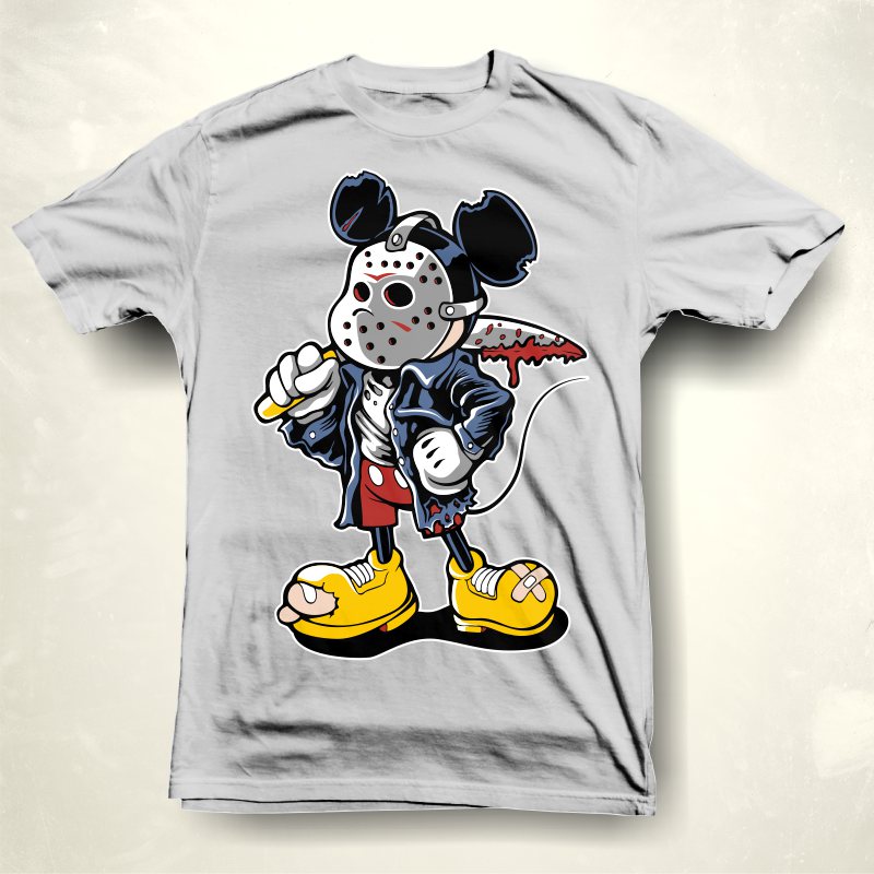 "Micky maniac" character style T-shirt design parody.The files available are suitable for Adobe Illustrator,Pdf and Corel Draw and can be used for digital printing and screen printing.