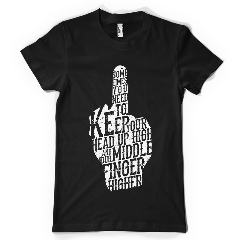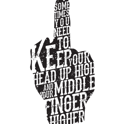 "Middle Finger" is a unique typography of the phrase "Sometimes you need to keep your head up high, and your middle finger higher.". This file contains a Photoshop file with 17 x 24 inches in size with 300 in resolution.