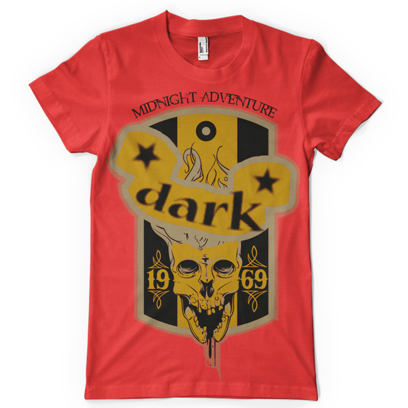 Midnight adventure printed t-shirt features a detailed screen print of skull shield is now available in EPS format file and can be used for digital printing and screenprinting . Ready to print or use in anything you want.