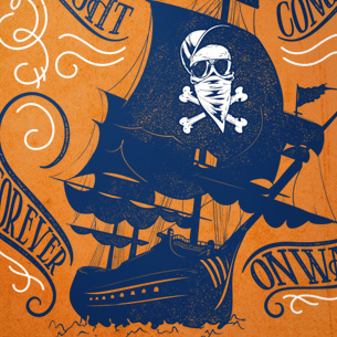 Midnight conqueros digital design template in vector format, featuring detailed sailboat on sea now available for Adobe Illustrator, Adobe Photoshop and Corel Draw and can be used for digital printing and screenprinting .