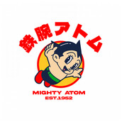 This design “ mighty atom ” is made in Adobe Ilustrator is ready for print.