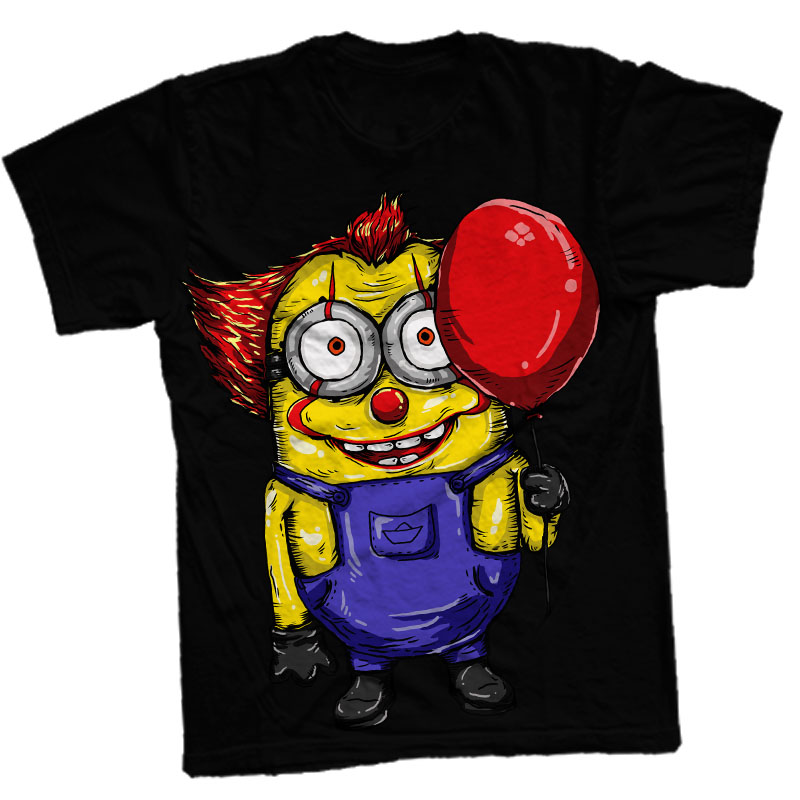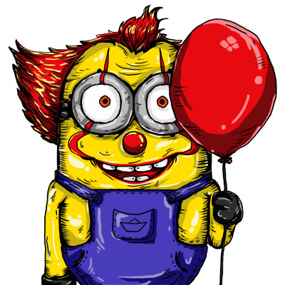 its a funny scarry minion holding a baloon