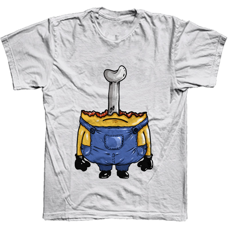 "Mini skull" T-shirt design featuring a cartoon character. The file is suitable for Adobe Photoshop and can be used for digital printing and screenprinting.