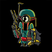Super Cute and Funny Boba Fett in minion character style T-shirt design template , The file is PSD separated Layers. Can be used for digital printing and screen printing.