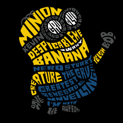 Minion Typography Design created with adobe Photoshop .4 colour print, PSD File separated Layers. Can be used for digital printing and screen printing.