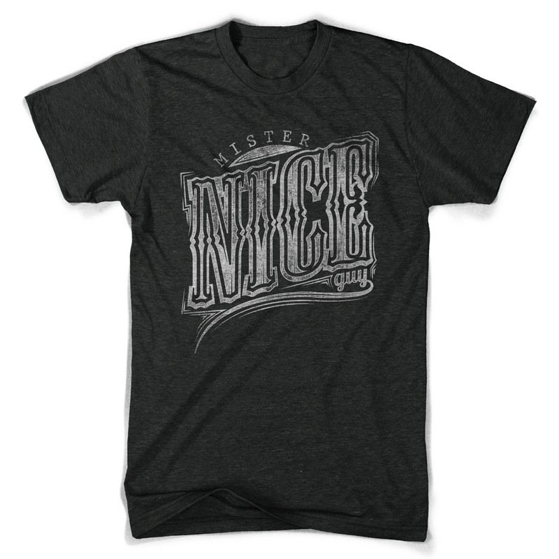 Mister nice guy graphic design template in vector format, featuring detailed cool typo tee now available for Adobe Illustrator, Adobe Photoshop and Corel Draw and can be used for digital printing and screenprinting .