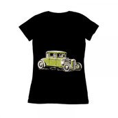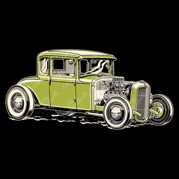 Traditional model A coupe, unchopped but channeled with flathead V8 engine - vector illustration