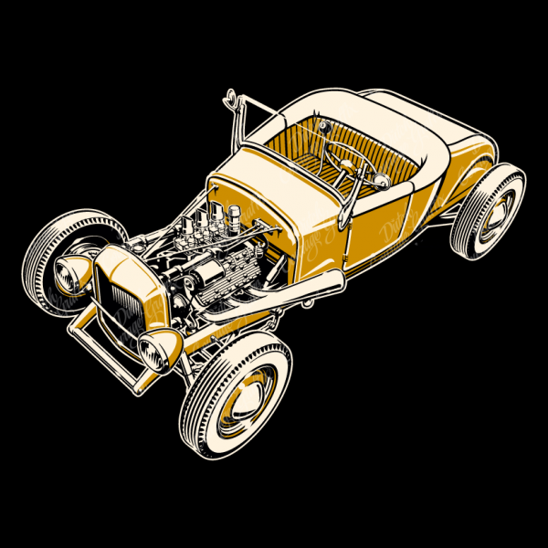 Ford Model T hot rod roadster with flathead V8 - high angle - vector illustration