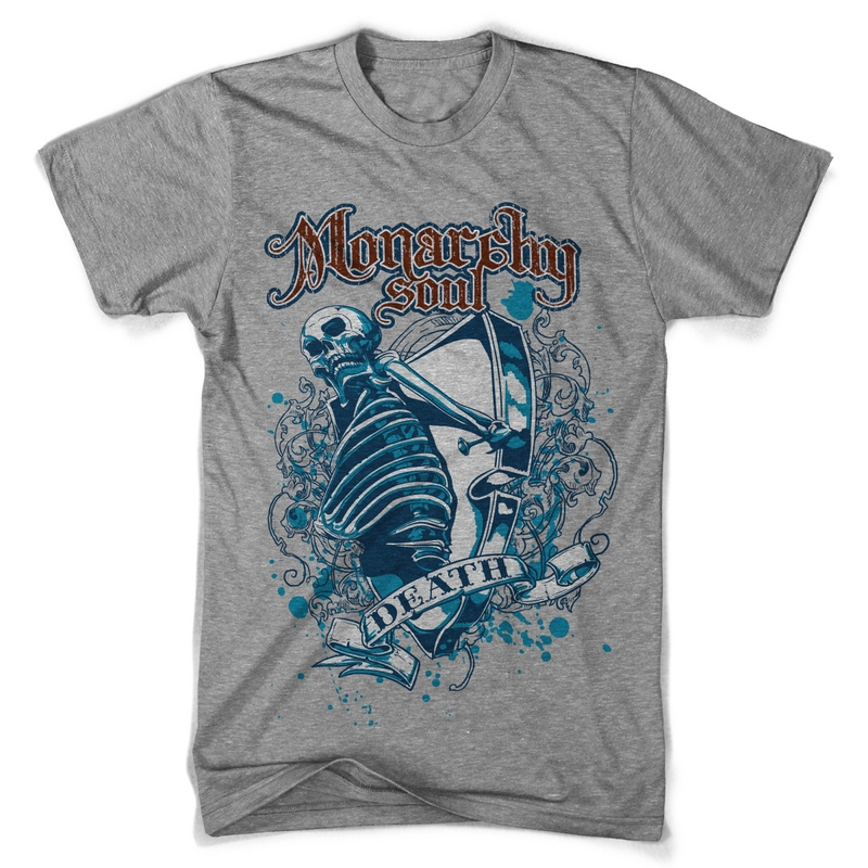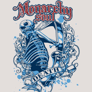 Monarchy soul digital design in vector format, featuring detailed skeleton with flourish details now available for Adobe Illustrator, Adobe Photoshop and Corel Draw and can be used for digital printing and screenprinting .