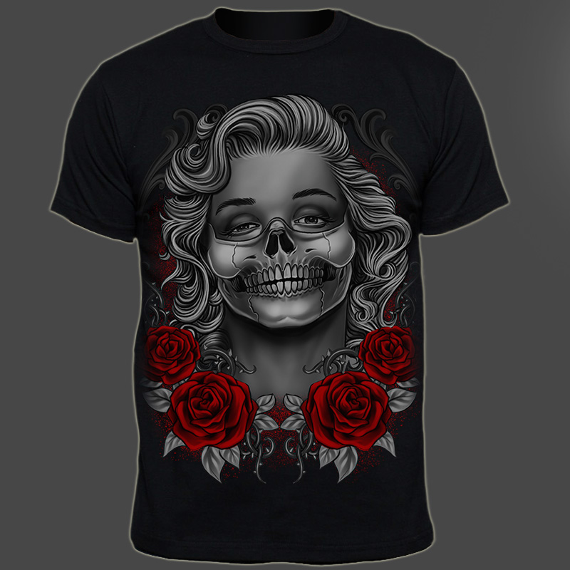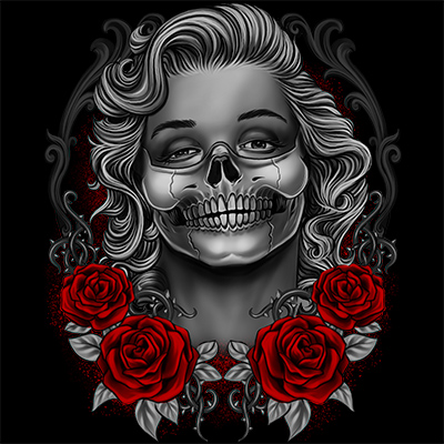 Monroses Skull T-shirt this great quality artwork design Template with Adobe Photoshop, the file is PSD separated Layers. Can be used for digital printing and screen printing.