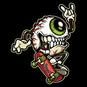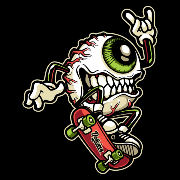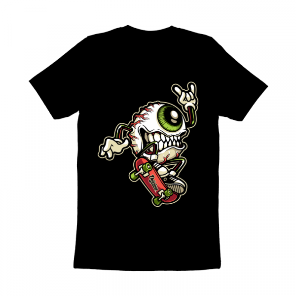 “Monster eye Skateboard ” Cartoon style. such as Ai,EPS,CDR, PDF and PNG Transparent. the design has 6 colors on black T-shirt. print it can be used for digital printing and screen printing