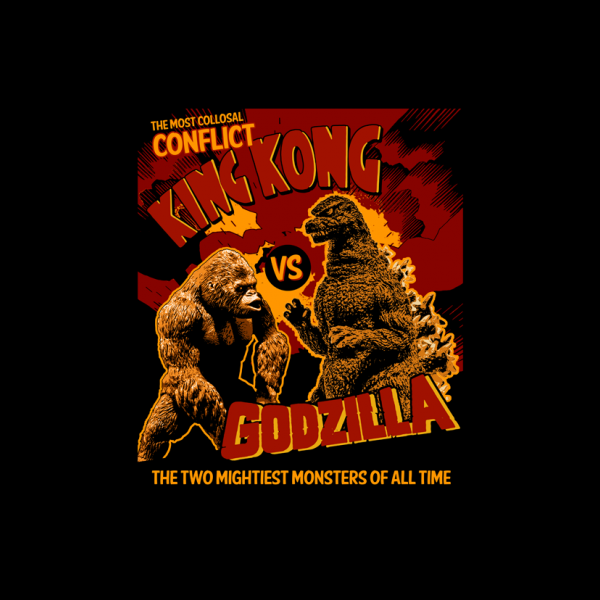 This design “monsters duel ” is made in Adobe Photoshop is ready for print.