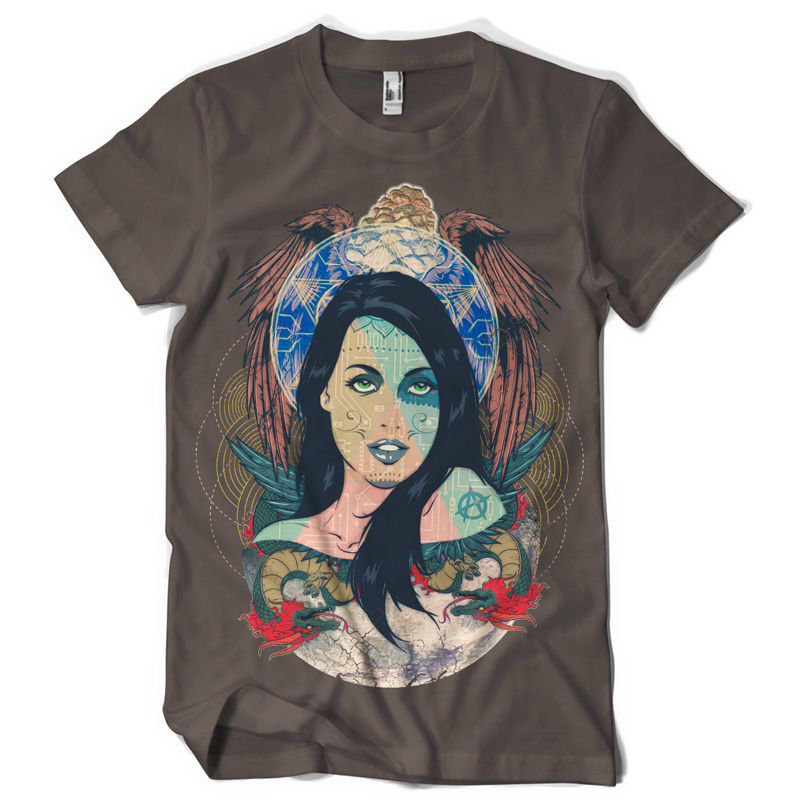 "moon spirit" Artwork created in Adobe Photoshop. The file available for the client upon purchase and download are 1 layered file in TIFF (with transparency) format designed for DIRECT TO GARMENT printing. Also available upon request is 1 file in PDF format, layered, designed for the SCREEN PRINTING.