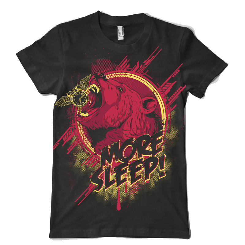 More Sleep! design features a Wild bear detailed screen print now available for Adobe Illustrator, and Corel Draw and can be used for digital printing and screenprinting.