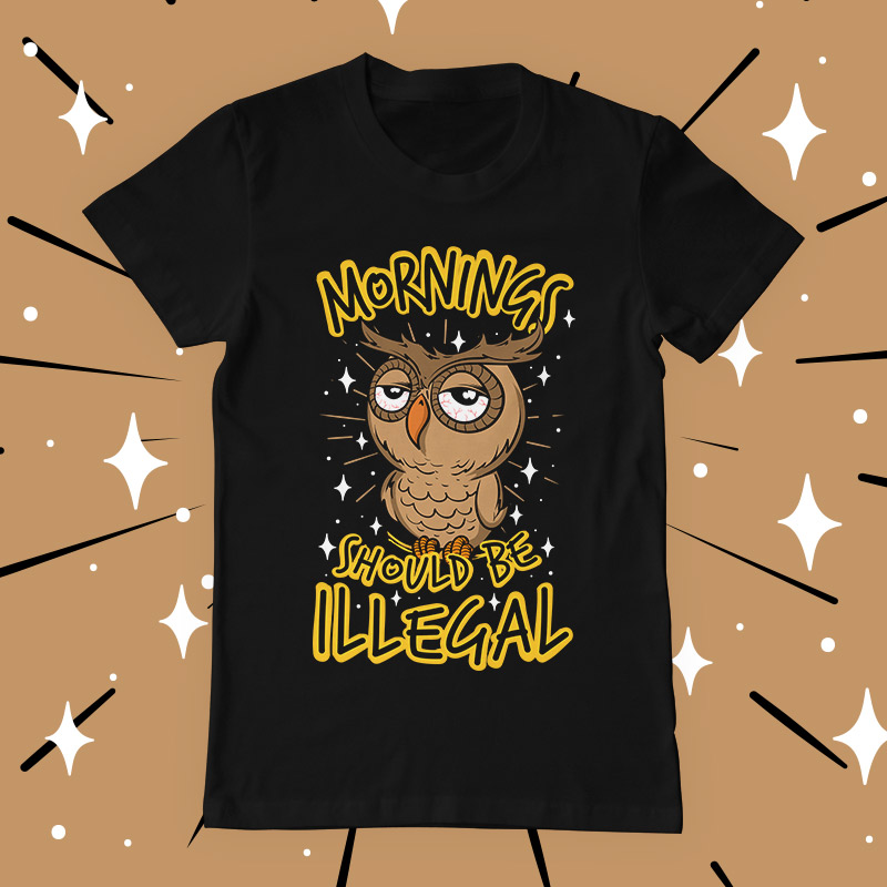 "Mornings should be illegal" design is available in Ai, EPS, PNG. Ai and EPS files are well organised with every element on it's own layer. PNG file is with transparency. Can be used for digital printing and screenprinting.