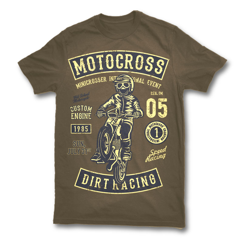 Moto Cross Tshirt Design Template based on vector files , such as AI and CDR also with PSD separated Layers file, the design has 2 color print, it can be used for digital printing and screen printing.