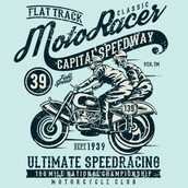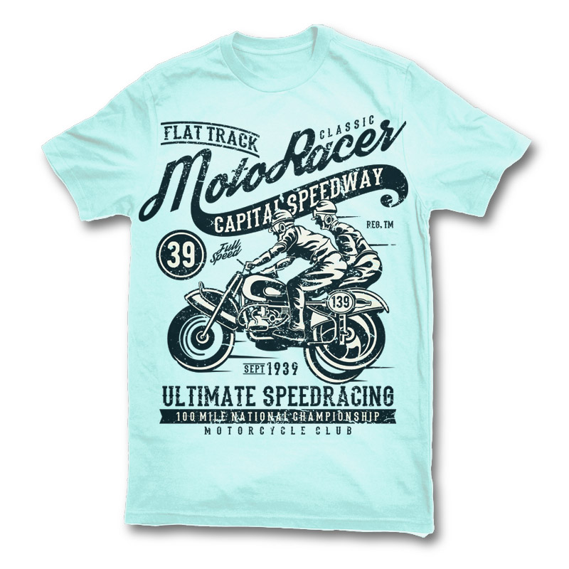 Moto Racer Classic Tshirt Design Template based on vector files , such as AI and CDR also with PSD separated Layers file, the design has 2 color print, it can be used for digital printing and screen printing.