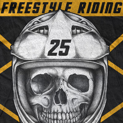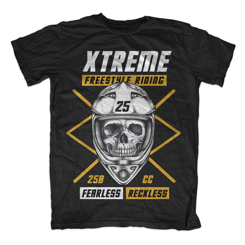 Illustration of skull helmet motocross with editable banner and text. Ready to print on t-shirt.