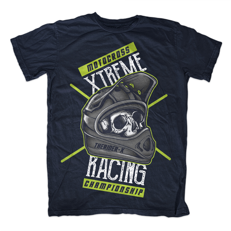 Illustration of skull helmet motocross with editable banner and text. Ready to print on t-shirt.