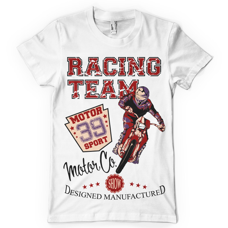 Motor race t-shirt print features a detailed design available for Adobe Illustrator, Adobe Photoshop and Corel Draw and can be used for digital printing and screenprinting . Ready to print or use in anything you want.