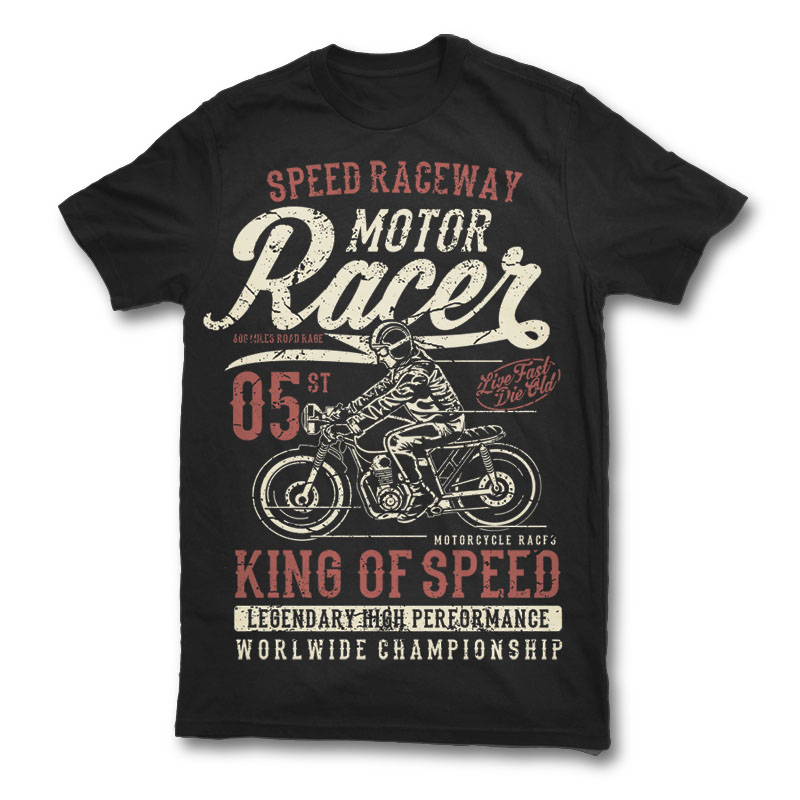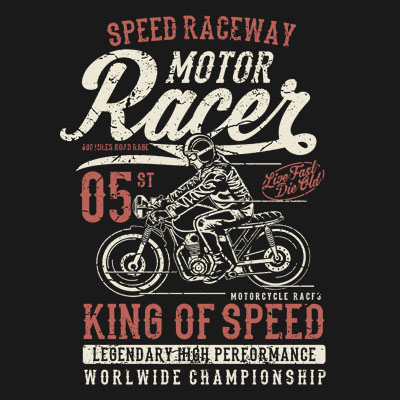 Motor Racer Tshirt Design Template based on vector files , such as AI and CDR also with PSD separated Layers file, the design has 2 color print, it can be used for digital printing and screen printing.