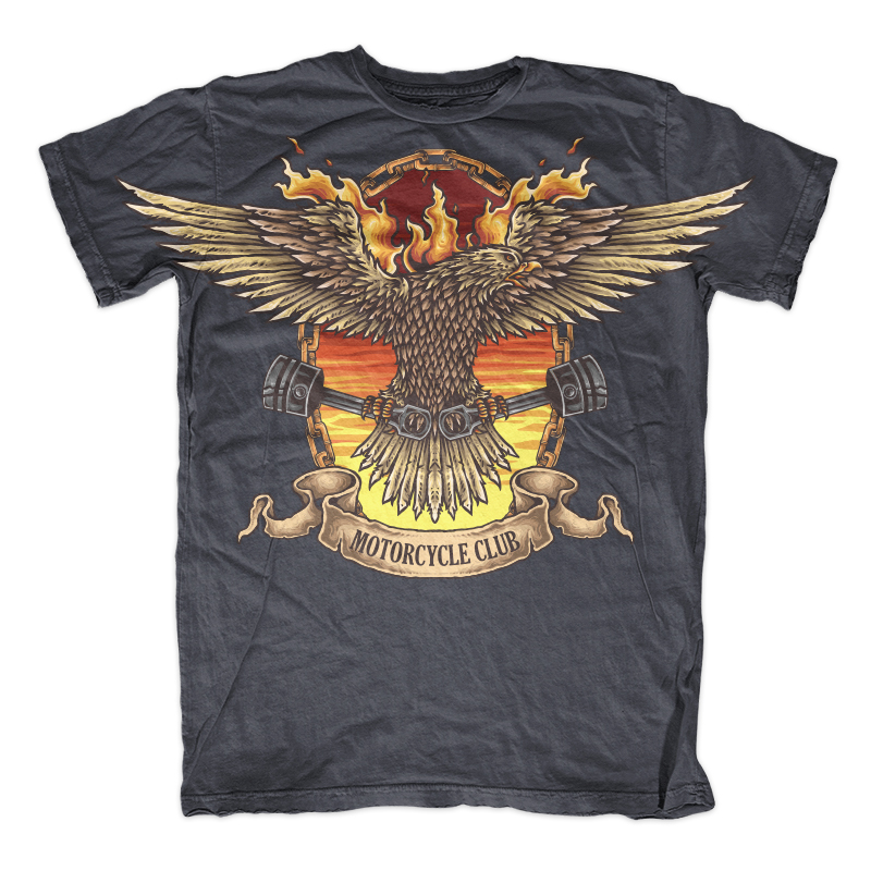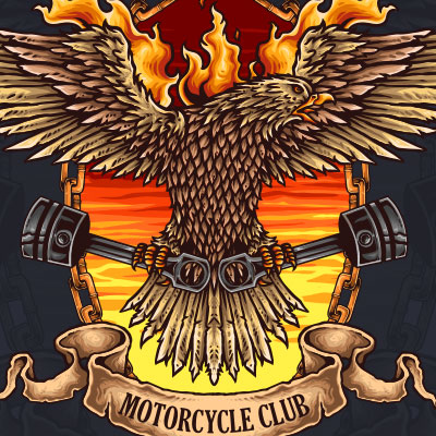 Vector illustration of american eagle with flames, chain and biker elements. This illustration will be great to print for your motorcycle / bike club. Ready to print on t-shirt.
