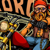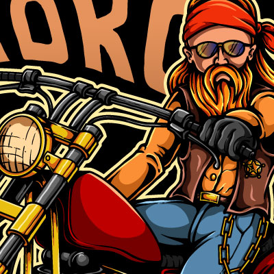 Illustration of classic motorcycle rider with bandana and gangster looking. Ready to print on t-shirt.