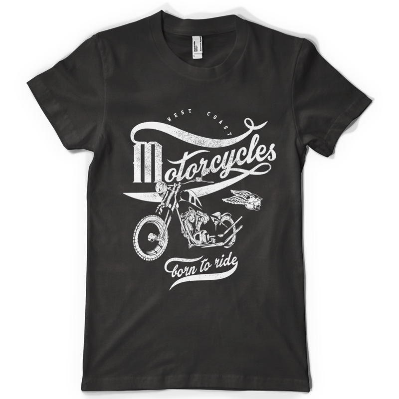 Motorcycles digital artwork template in vector format, featuring detailed motorcycle t-shirt now available for Adobe Illustrator, Adobe Photoshop and Corel Draw and can be used for digital printing and screenprinting .