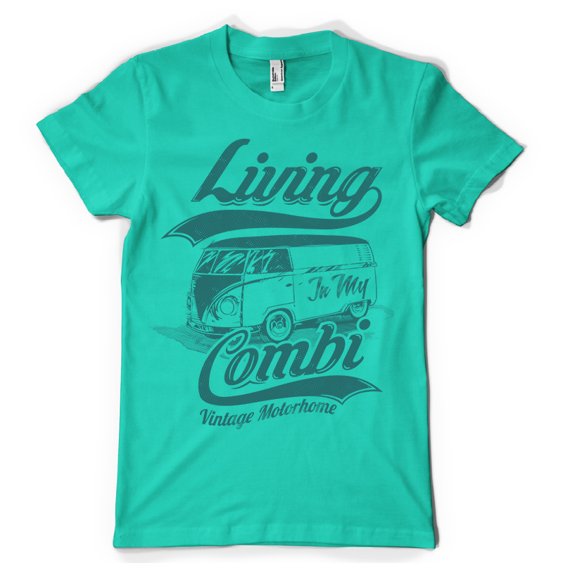 Motorhome design features a vintage combi detailed screen print now available for Adobe Illustrator, Adobe Photoshop and Corel Draw and can be used for digital printing and screenprinting