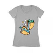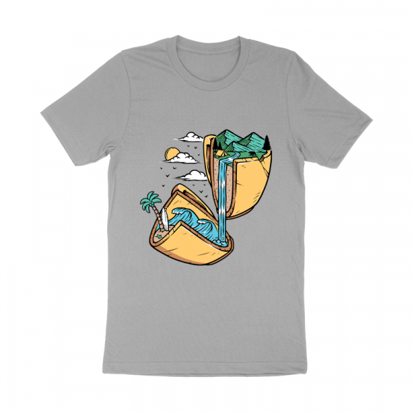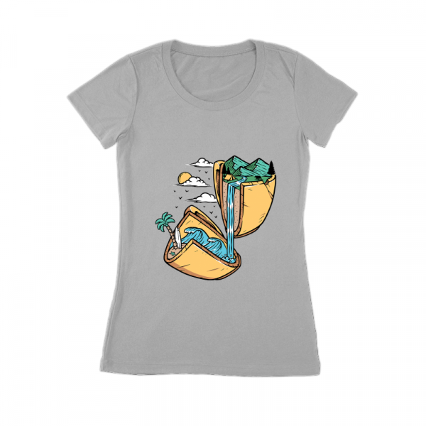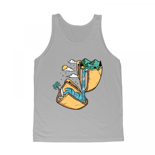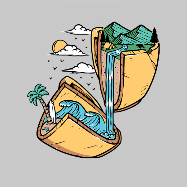 mountain and beach in broken glass